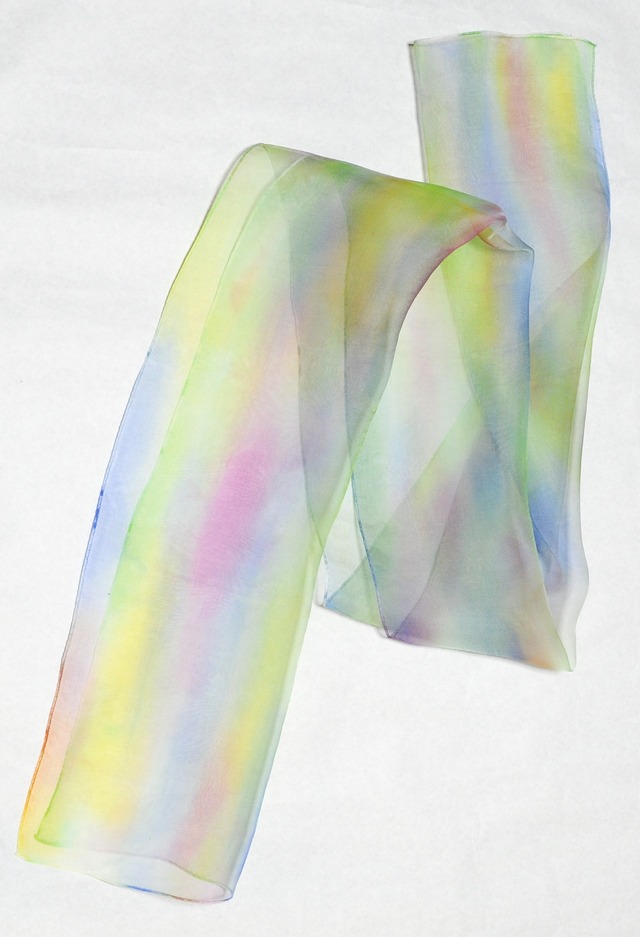 透ける素材に軽やかな南風を染めたストールです。 素材:シルクオーガンジー サイズ:144㎝×33㎝ ※ご購入の際は、HOME画面より「商品についてのご注意」を クリックの上必ずご一読ください。 ※ラッピングについての詳細は、FAQをご覧ください。