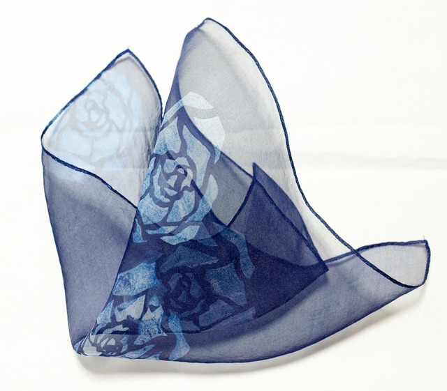 透けて重なるバラの花が美しいポケットチーフです。 サイズ:30㎝×30㎝ 素材:シルクオーガンジー ※ご購入の際は、HOME画面より「商品についてのご注意」を クリックの上必ずご一読ください。 ※ラッピングについての詳細は、FAQをご覧ください。