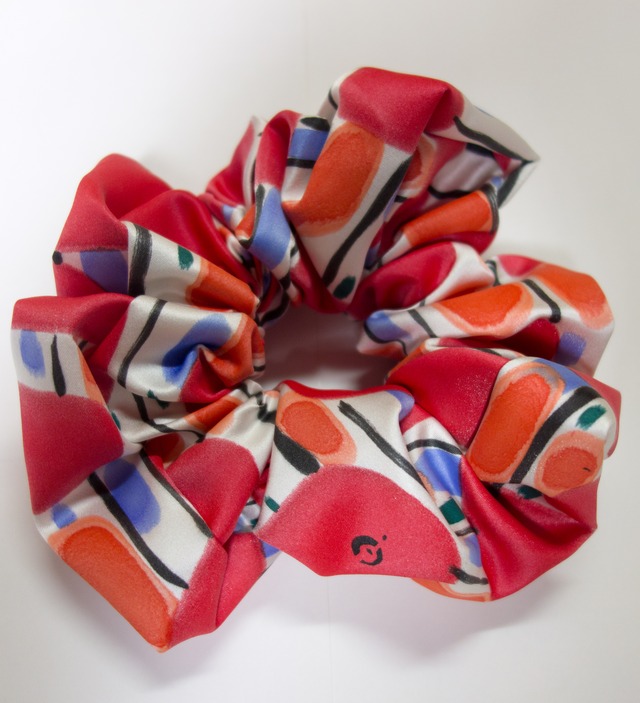 希少手染め一点物のシュシュです。 厚みのあるサテン生地に POPでかわいいデザインを施した BIGシュシュ。 ハリがあるので、ふっくら優雅な形を保てます。 髪に2巻きするだけで、 華やかな印象です。 自然な光沢があり、高級感があります。 日常使いはもちろんのこと、 ウェディングドレスに使用する生地を使って 制作しておりますので 華やかな場でもお使いいただけます。 ギフトにもどうぞ。 サイズ:直径約18㎝ ※OPP+リボン包装でお届けします。