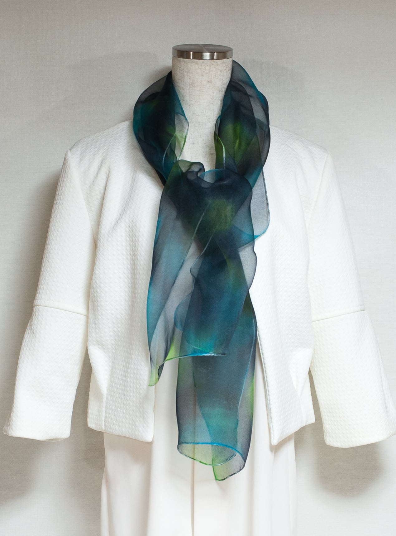 シルク オーガンジーストール 作家 一点物 作品名 ミッドナイト送料無料】